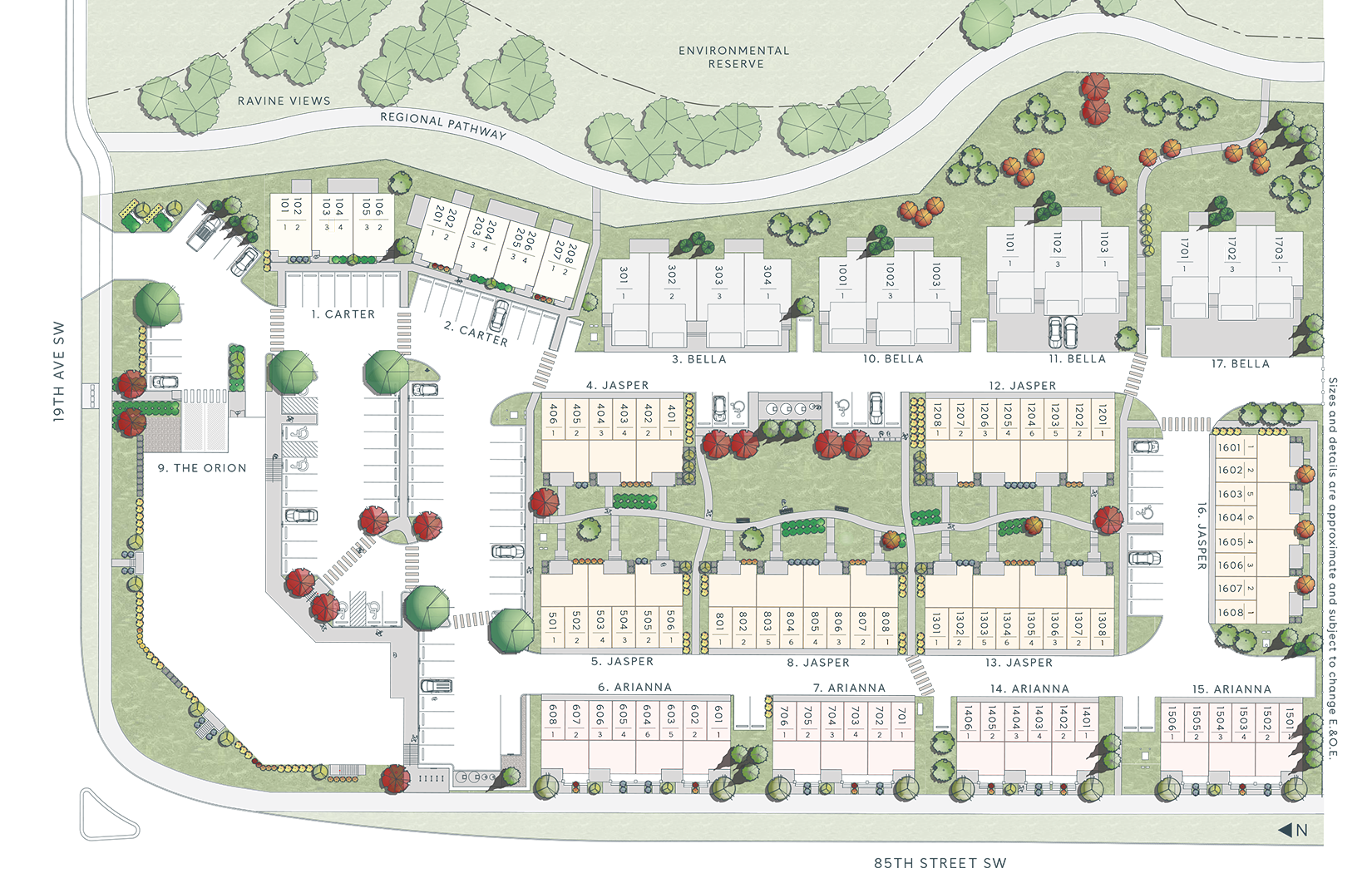 ● Balconies● Full landscaping● Large low-e windows● Alberta New Home Warranty● Low maintenance long-lasting exteriors● Underground parking ● Ravine and connected pathway system near homes